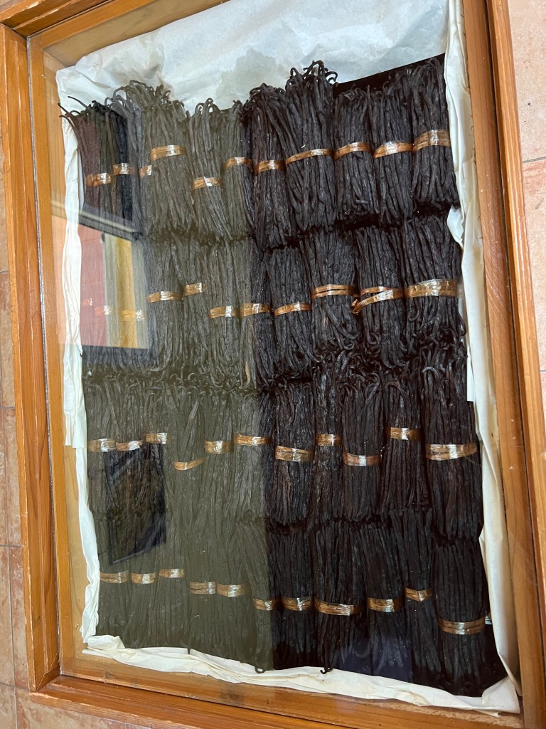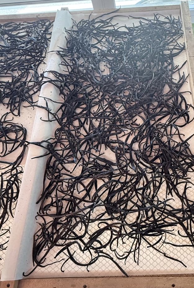 bis zur fertigen, verkaufsfertigen Vanilleschote vergehen sieben Jahre! Trocknen, Fermentieren, Sortieren… ein echter Handwerksmarathon.