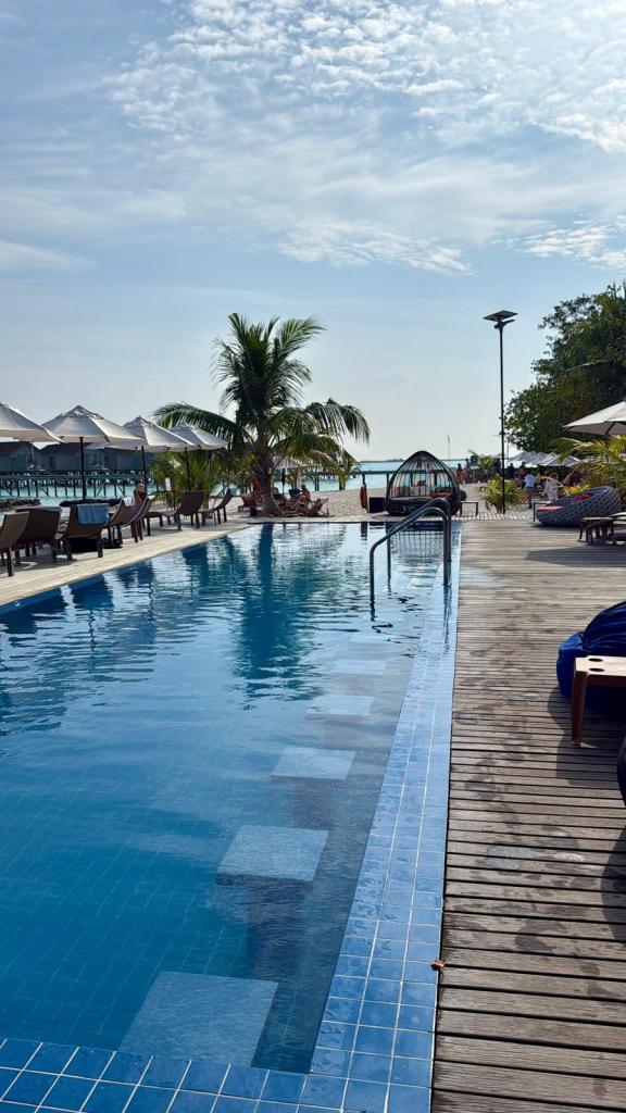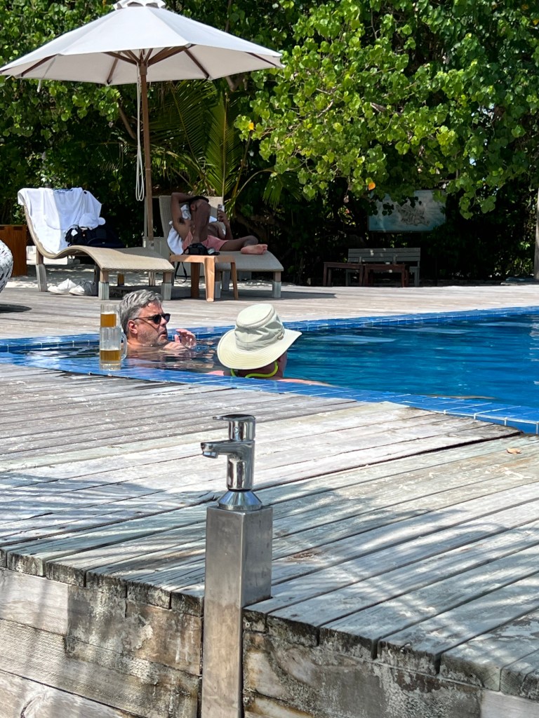 Anschließend genossen wir das türkisfarbene Meer und den erfrischenden Pool, begleitet von weiteren Bierchen und einem Mitreisenden.