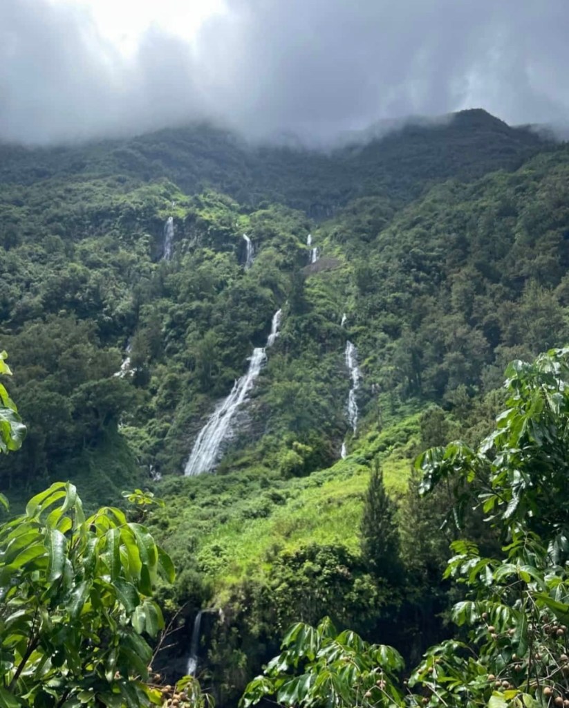 Vom Hafen in Le Port ging es direkt nach Norden in den Talkessel Salazie, eine der drei riesigen „Calderas“ der Insel. Schon die Fahrt war ein Traum: knallgrüne Hänge, Bananenplantagen, überall kleine Wasserläufe – und das alles unter einem Himmel, der typisch-reunionisch schnell zwischen Sonne und dicken Wolken wechselte.
