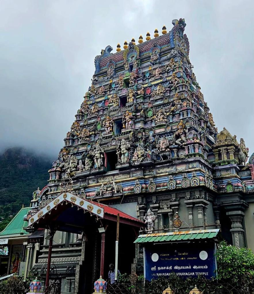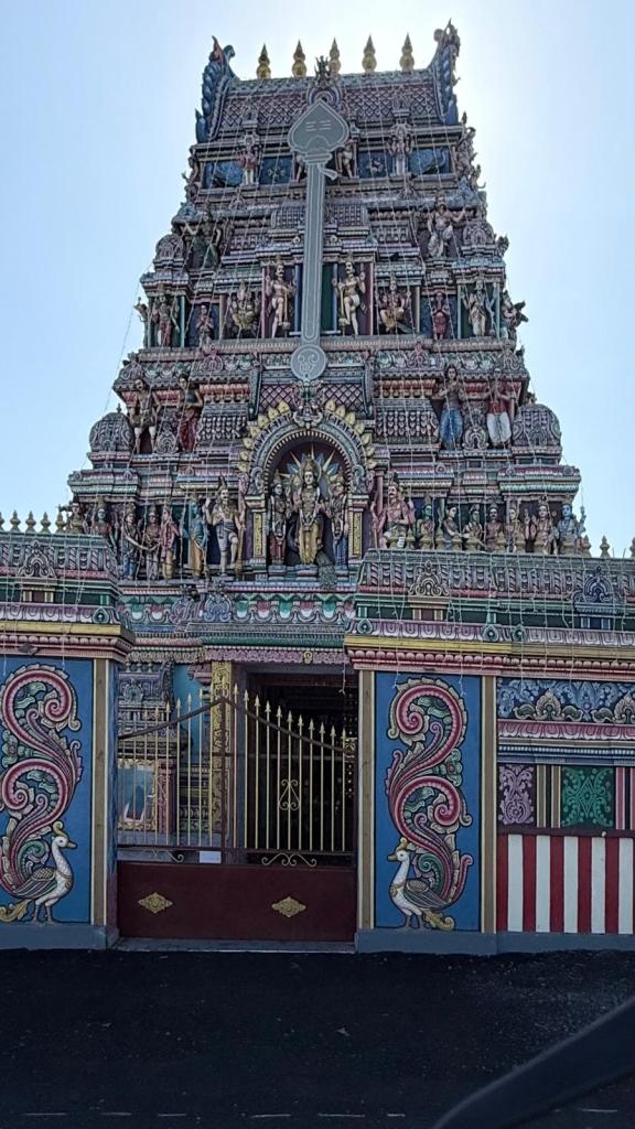 Erster kleiner Stopp: ein bunter Hindutempel in St. André.