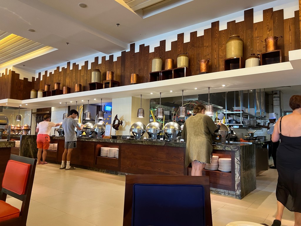Die Anlage ist gigantisch: endlose Pools, Wassersport ohne Ende, eine echte 18-Loch-Golfanlage direkt am Meer, Gärten, die aussehen wie aus einem Hochglanzmagazin. Und das Buffet? Eine Offenbarung. Hunderte Gerichte, alles frisch, alles perfekt gewürzt – wir haben uns durchgekämpft wie Entdecker. Danach lagen wir einfach nur faul am Strand oder im Schatten,waren schwimmen und ließen uns die salzige Brise um die Nase wehen und fühlten uns „sauwohl“ .
