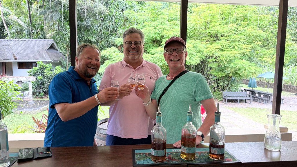 Hier wird der legendäre Rum gebrannt und wir durften natürlich ausgiebig probieren. Der Guide erklärte alles ganz entspannt, wir nickten wissend und sagten Sätze wie „der hier hat mehr Vanille… aber der mit Kokos ist der Wahnsinn!“ Am Ende hatten wir zwei Flaschen im Arm und das Gefühl, sehr wichtige Entscheidungen getroffen zu haben. (zu Hause schmeckt’s hoffentlich noch besser!)