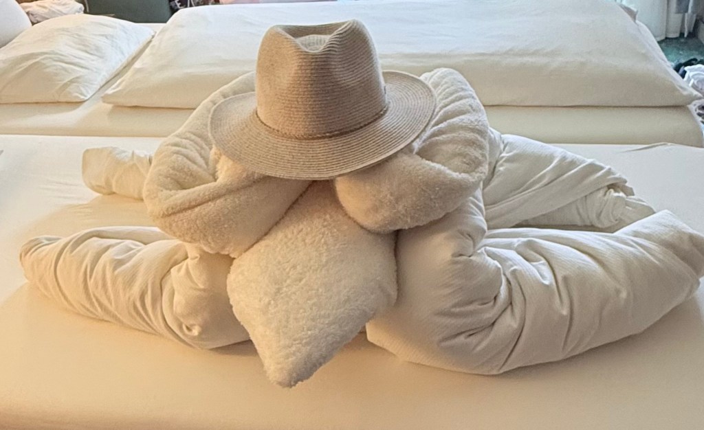 Um 18:00 Uhr stand dann das Geburtstagsmenü auf dem Programm. Wir genossen einen herrlichen Abend, mit köstlichem Essen und einer festlichen Stimmung. Erschöpft, aber glücklich, kehrten wir schließlich auf unseren Balkon zurück. Bei lauem Lüftchen und dem beruhigenden Blick auf das Meer ließen wir den Tag Revue passieren und stießen mit einem Glas Sekt auf die Erinnerungen an. 🥂🍾