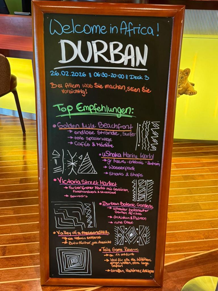 Nächster Halt: Südafrika. Mal sehen, was uns da erwartet. Auf nach Durban 🛳️
