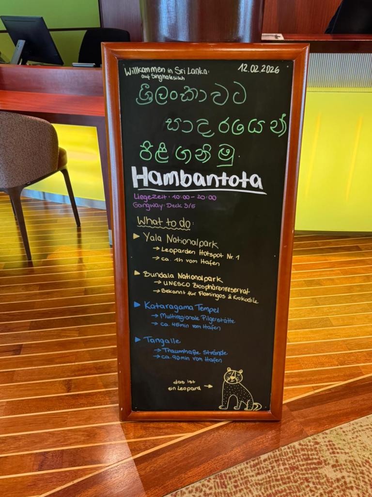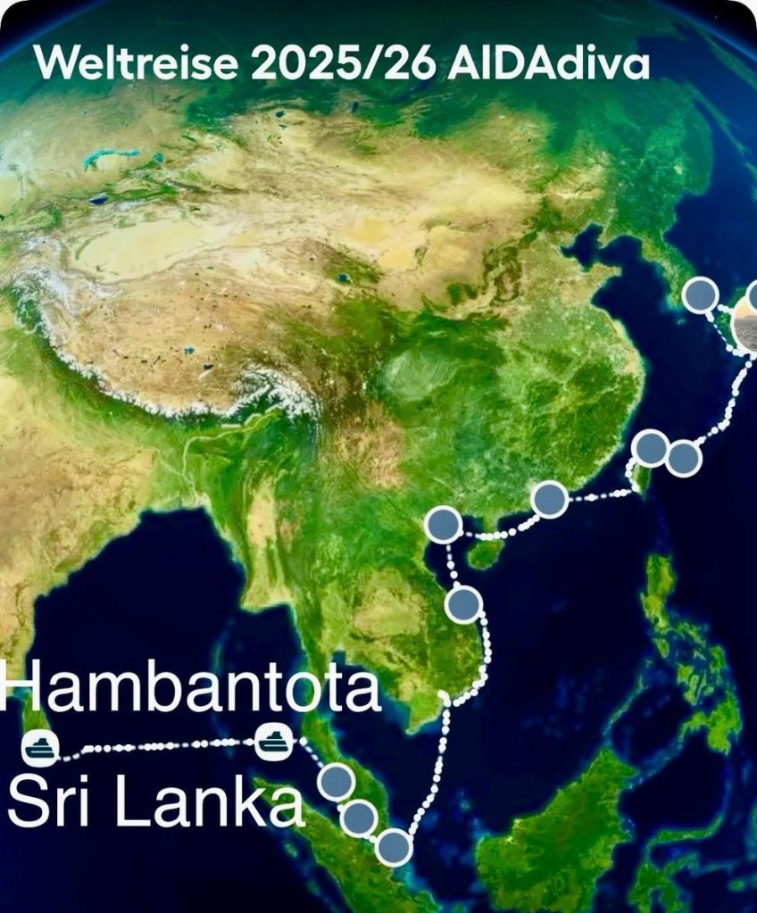 Wir legen in Hambantota an, in diesem riesigen, fast gespenstisch leeren Industriehafen. Überall weiß man: Nach dem verheerenden Tsunami 2004 lag hier alles in Trümmern. Die Chinesen kamen, pumpften Milliarden rein – und besitzen jetzt quasi den ganzen Laden auf 99 Jahre. Ein Hafen, der immer noch mehr Prestige- als Profitobjekt ist..
