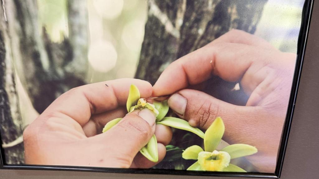 Die Erklärungen waren richtig faszinierend. Vanille stammt ursprünglich aus Mexiko, wo eine bestimmte Biene die Bestäubung übernimmt. Auf La Réunion klappt das mit der Biene leider nicht – also machen das die Menschen per Hand mit einer simplen Kaktusnadel. Drei Sekunden pro Blüte für geübte Hände, aber von der Blüte