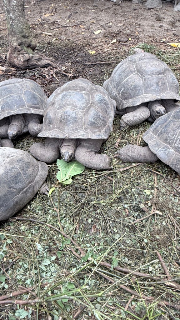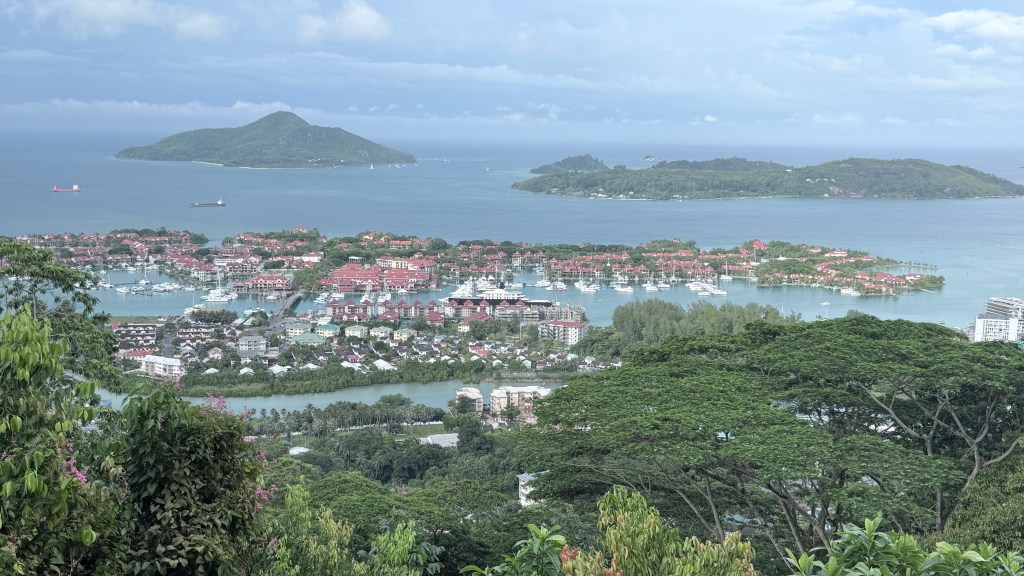 Danach noch eine kleine Strand-Hopping-Runde weiter südlich – Fotostopps an traumhaften Buchten, Granitfelsen, türkisem Wasser, das inzwischen in der Sonne glitzerte wie ein Werbespot. Handy-Akku fast tot vor lauter Fotos. Und dann der krönende Abschluss: Wir bogen ab auf die berühmte Sans Souci Road Richtung Westen/Norden – über den Berg, durch den Morne Seychellois National Park. Vorbei an der alten Tee-Plantage (SeyTe), wo man richtig guten Tee kaufen kann und die Luft nach Zitronengras riecht. Oben am Mission Lodge Viewpoint (oder wie auch immer die Aussichtspunkte heißen) haben wir noch ein paar grandiose Panoramablicke über die Westküste erhascht – grüne Berge, wilder Ozean, kleine Inseln am Horizont. Einfach kitschig-schön.