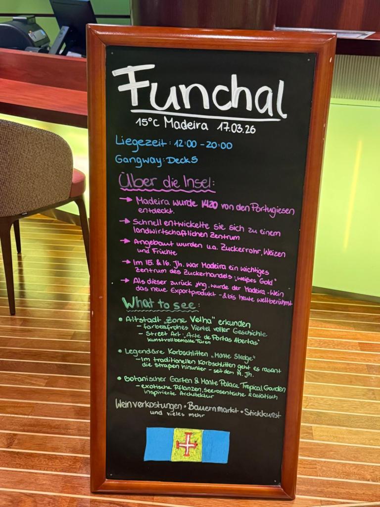 An Silvester 2024 waren wir schon zum 3. Mal in Funchal. Gestern wurden wir zunächst von Regen empfangen, der uns von einem Landgang abhielt.