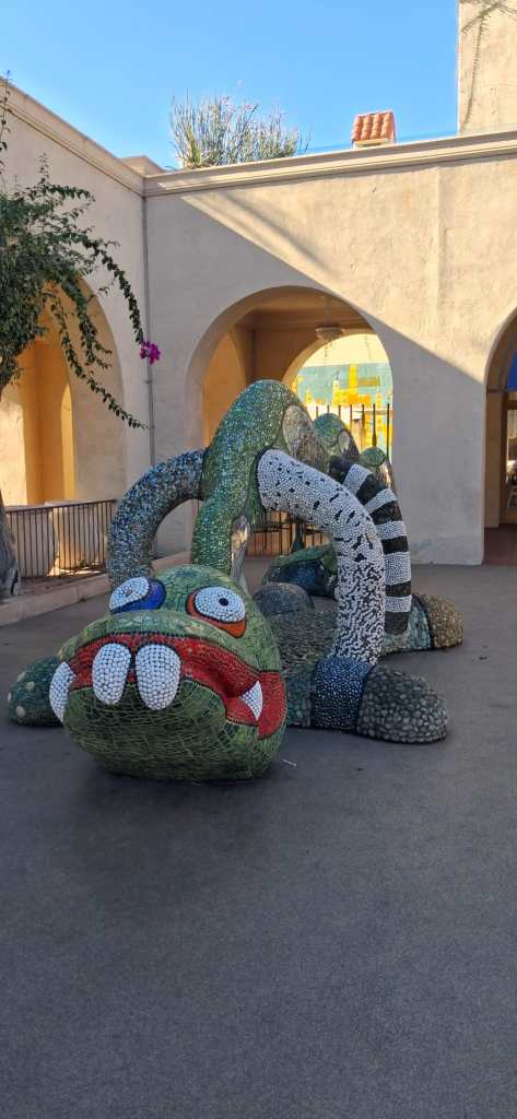 Nach gut einer Stunde erreichten wir Venice Beach. Der Stadtteil wurde nach Venedig benannt, weil man hier einst Wasserkanäle anlegte, um Häuser mit Bootsanlegern besser verkaufen zu können. Heute ist davon vor allem der Name geblieben – dafür gibt es Graffiti, Tattoo-Shops, Surfer, jede Menge Individualisten und natürlich den legendären „Muscle Beach“, wo angeblich schon Arnold Schwarzenegger Eisen gestemmt hat. Man merkt: Hier wird nicht nur Sonne getankt, sondern auch ordentlich Selbstdarstellung betrieben.