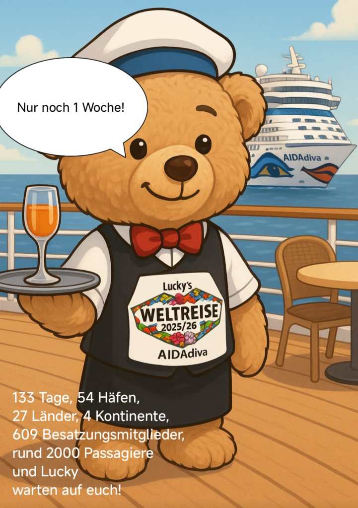 dann fahren wir nach Hamburg, um am 10.11.2025 mit der AIDA Diva unsere Weltreise zu starten